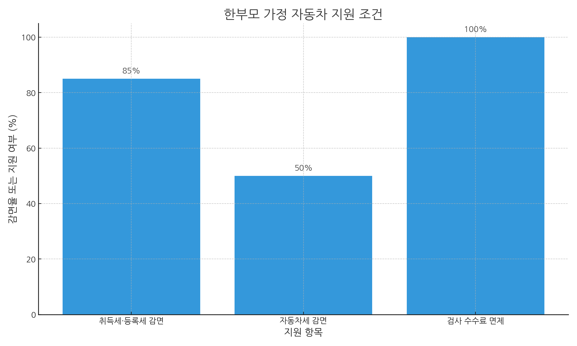 | 취득세·등록세 감면 | 한부모 가족 증명 필수 | 최대 85% 감면 |